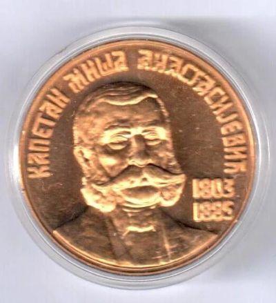 Югославия Медаль 1994 Миша Анастасиевич Дони-Милановац D-42мм желт.мет. Пруф капсула 23гр футляр