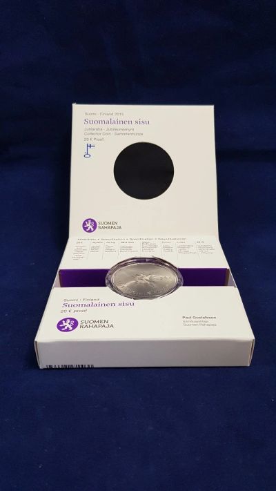 Финляндия 20 евро 2015 Финский характер Sisu коробка капсула cеребро Ag Proof
