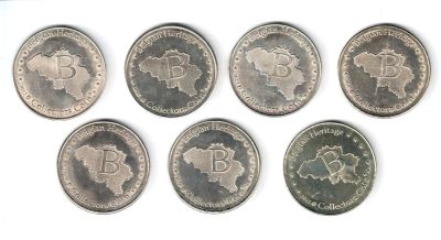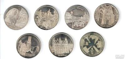 Бельгия набор 7шт туристический жетон Брюгге достопримечательности D-30мм Белый металл