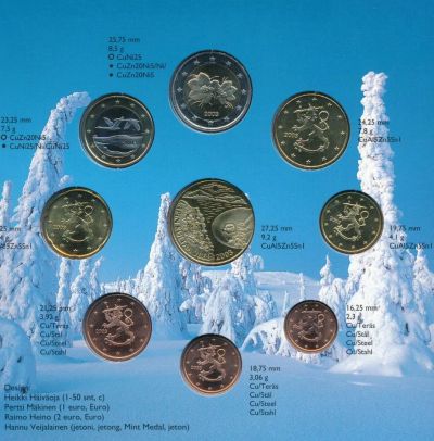 Финляндия 2003 Набор евро монет UNC + жетон Буклет