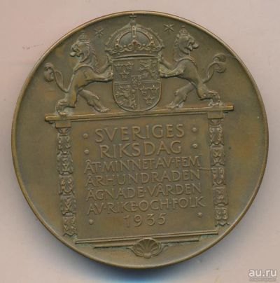 Швеция 1935 г Медаль 500 лет шведскому парламенту Ригсдагу D - 57mm Br Бронза