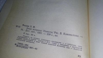 Зиновий Фазин, Знак вопроса,....Повесть о событиях, происходивших в нашей стране в 20-х годах и связанных с разгадкой тайны Курской магнитной аномалии.....(657)(946)