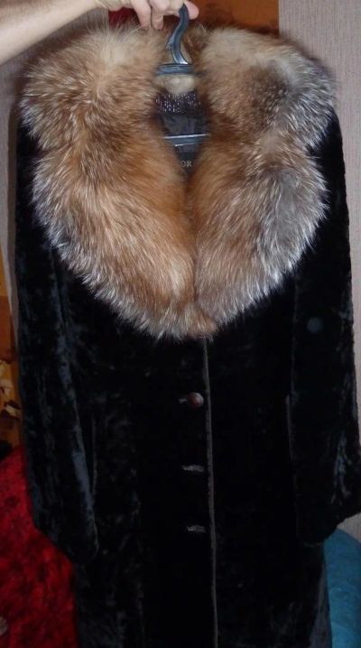 ШУБА мутон, ворот лиса, НОВАЯ (цв.горький шоколад)