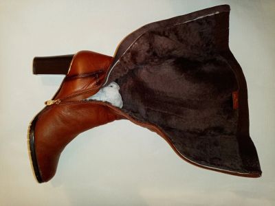 Фирменные трендовые зимние на натуральном меху рыжие сапоги р. 40, натуральная кожа