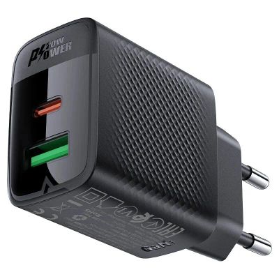 Сетевая зарядка ACEFAST A78 PD20W GaN USB-A+USB-C charger (EU), черный
