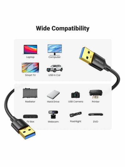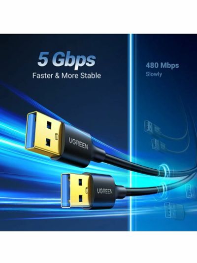 Кабель UGREEN US128 (90576) USB-A 3.0 Male to Male Cable, 3м, черный