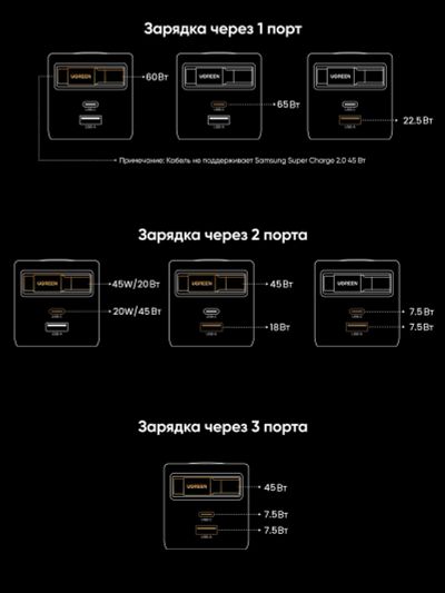 Зардяное устройство UGREEN X614 (65822) 45W GaN Fast Charger USB-C&USB-A with Retractable Cable USB-C, серый космос