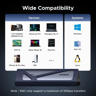 Бокс внешний для жесткого диска UGREEN CM767 (55150) M.2 NVMe/SATA SSD Enclosure 20Gbps, серый космос