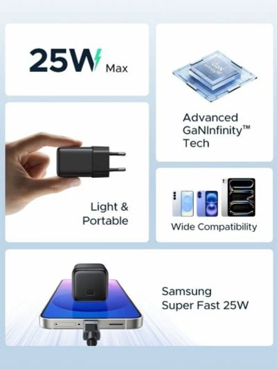 Зардяное устройство UGREEN X517 (65736) 25W USB-C GaN Fast Charger EU, черный