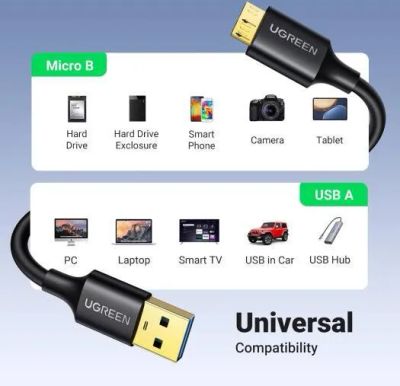 Кабель UGREEN US130 (10840) USB 3.0 A Male to Micro USB 3.0 Male Cable 0.5м черный