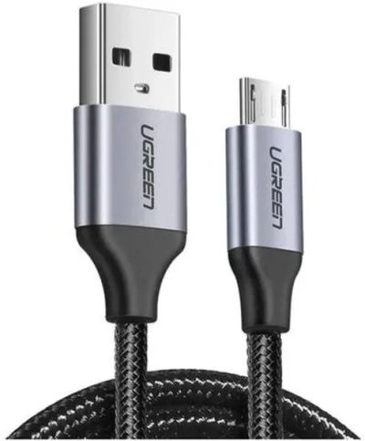 Кабель UGREEN US290 (60145) USB-A to Micro USB Cable Nickel Alu Braid, 0,5м, серо-черный