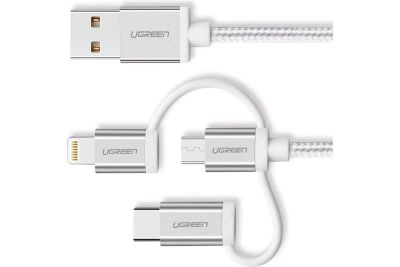 Кабель UGREEN US186 (50203) 3-в-1 USB-A 2.0 Multifuntion Cable в оплетке, 1,5 м, серебристый