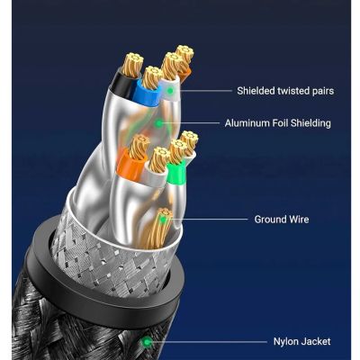 Кабель UGREEN NW153 (30800) Cat8 CLASSⅠF/FTP Round Ethernet Cable оплетка 20м черный