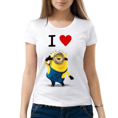 Женская футболка хлопок "I love minions - Миньон" (Арт.: 173384), S (42-44) - новая в наличии | Много оригинальных товаров с прикольными принтами, для себя и в подарок! * Доставка по Красноярску! Доставка по России!