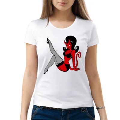 Женская футболка хлопок "Devil girl" (Арт.: 110848), M (44-46) - новая в наличии | Много оригинальных товаров с прикольными принтами, для себя и в подарок! * Доставка по Красноярску! Доставка по России!