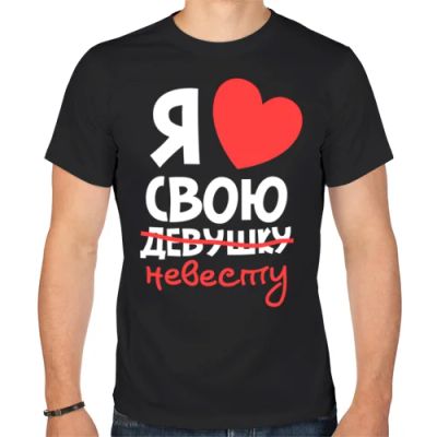Мужская футболка хлопок "Я люблю свою девушку-невесту" (Арт.: 164470), S (46-48) - новая в наличии | Много оригинальных товаров с прикольными принтами, для себя и в подарок! * Доставка по Красноярску! Доставка по России!