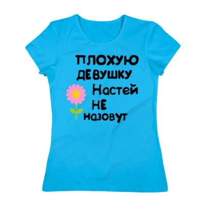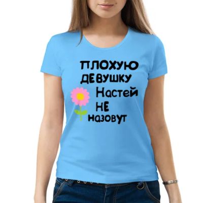 Женская футболка хлопок "Настя - Плохую девушку Настей не назовут" (Арт.: 147667), S (42-44) - новая в наличии | Много оригинальных товаров с прикольными принтами, для себя и в подарок! * Доставка по Красноярску! Доставка по России!