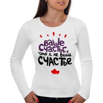 Женский лонгслив хлопок "Ваше счастье" (Арт.: 247974), XS (40-42) - новый в наличии | Много оригинальных товаров с прикольными принтами, для себя и в подарок! * Доставка по Красноярску! Доставка по России!