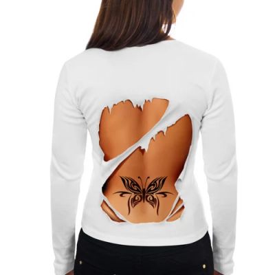 Женский лонгслив хлопок "Тату на спине" (Арт.: 163200), XXL (50-52) - новая в наличии | Много оригинальных товаров с прикольными принтами, для себя и в подарок! * Доставка по Красноярску! Доставка по России!