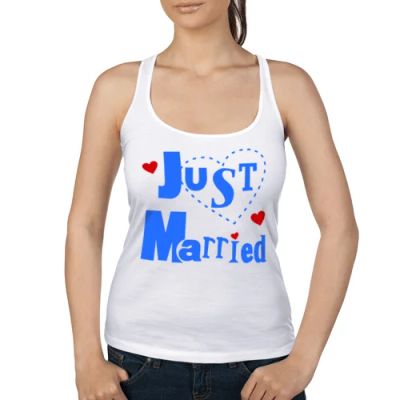 Женская майка борцовка "Молодожены - Just Married" (Арт.: 129520), XS (40-42) - новая в наличии | Много оригинальных товаров с прикольными принтами, для себя и в подарок! * Доставка по Красноярску! Доставка по России!