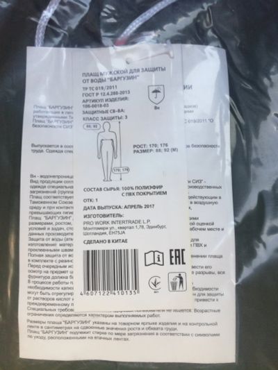 Плащ защита от дождя баргузин L разм 48-50 рост 170-176, м44-46 рост 170-176