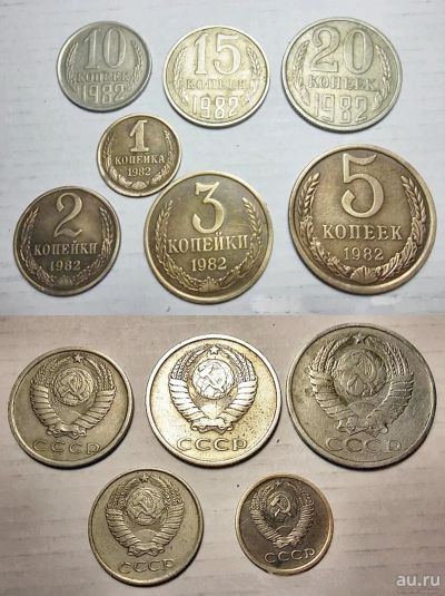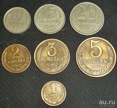 Годовой набор монет 1982 года. СССР. 1-2-3-5-10-15-20 копеек.