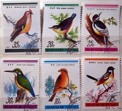 Марки - Фауна. Корея Северная (КНДР). Птицы. Полная серия - Дятлы.1988 год. 6 шт.