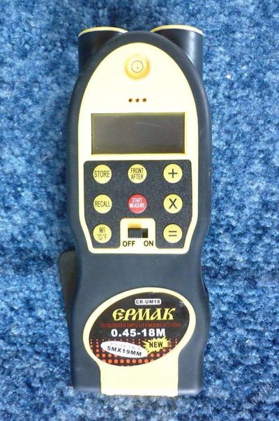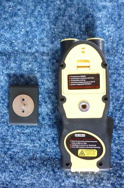 Дальномер ультразвуковой ЕРМАК 0,45м-18м +встр. рулетка 5м, в обрезинен. корпусе, CR-UM18