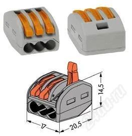 Клеммник WAGO 222 400V для распр.коробок 3 проводника 0,5-4,0мм2 с рычажным зажимом