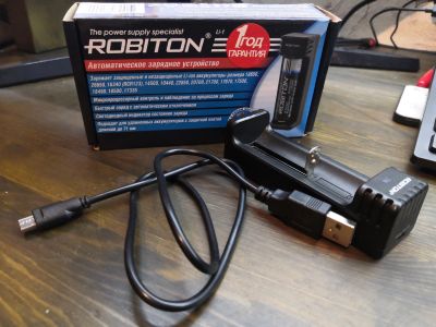 Зарядное устройство Robiton Li-1 для цилиндрических Li-ion аккумуляторов 18650/26650/16340(RCR 123A)/14500/10440/22650/20700/21700/17670/17500/18490/18500/17335 от любого USB порта 500-1000mA
