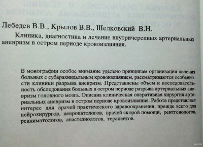 Лебедев Вячеслав, Крылов Владимир, Шелковский Владимир – Клиника, диагностика и лечение внутричерепных артериальных аневризм в остром периоде кровоизлияния. / 5-900833-09-7 / Редактор А. Карушина.