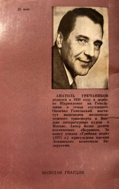 Гречаников Анатоль - Полесский треугольник. Стихи. / Издательство: Молодая гвардия (1986). / Переводы с белорусского: В. Казакевич, Д. Ковалев, И. Бурсов. Редакторы: И. Бурсов, М. Беляев, Р. Тагирова. Художник Б. Косульников.