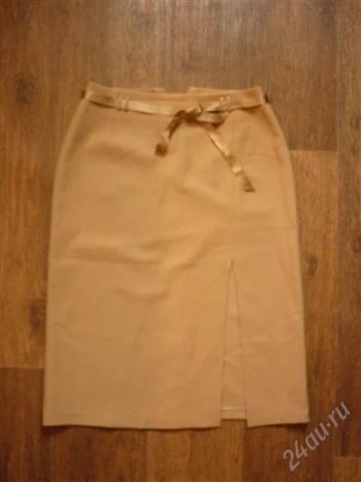 Юбка бежевая с разрезом на боку