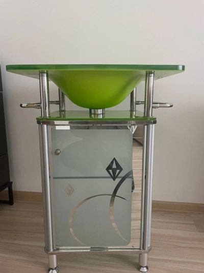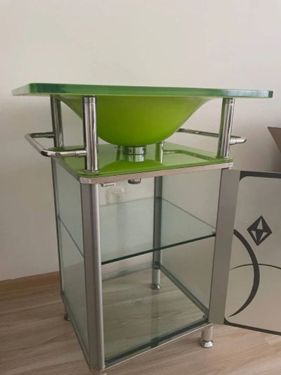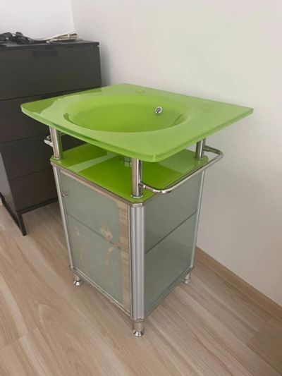 Раковина с тумбой стеклянная для ванной комнаты