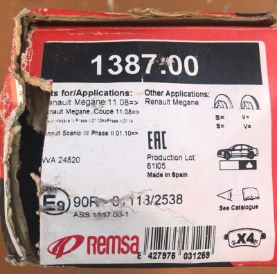 Комплект тормозных колодок, задние, дисковые Remsa 1387.00