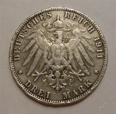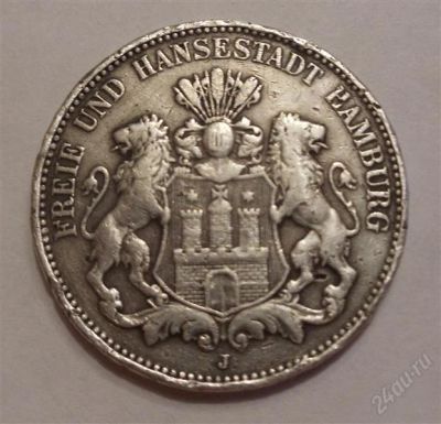 Монета Германии, Гамбург 1911г - три марки