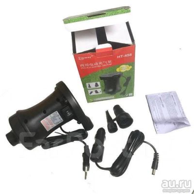 Насос электрический HT-458 (копрессор) работает как от прикуривателя так и от розетки ( 12 В + 220В) В комплекте 3 насадки. (Отличный вариант накачки ( и скачивания) лодок,матрацов и т.д.)