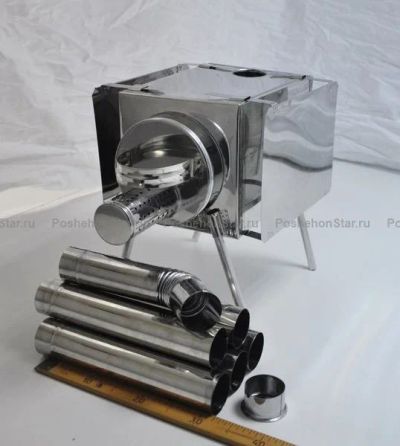 Печка Пошехонка (печь) "Рыбака" с экранами. В комплекте Сумка + трубы 6 штук