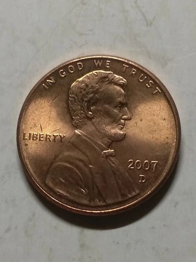 США 1 цент, 2007 Отметка монетного двора: "D" - Денвер