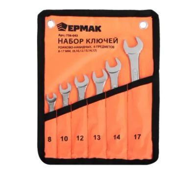 Ключи рожково-накидные Ермак 6 предметов 8-17мм в Сумке 736-043