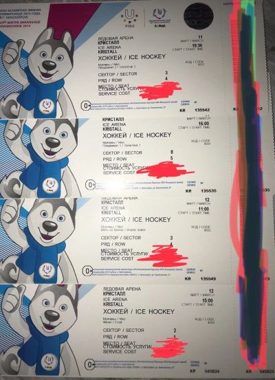 Хоккей универсиада 2019 Красноярск (полуфинал 1, полуфинал2,матч за бронзу) по 1 билету, можно и второй найти, финал тоже при желании