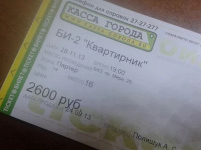 Билет на концерт группы БИ-2