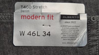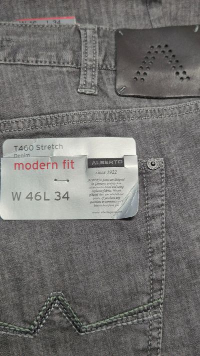 Джинсы мужские Alberto Stone Modern Fit T-400 Light Denim 1575-995 цвет серый графит р. W46 L34 Made in Tunisia