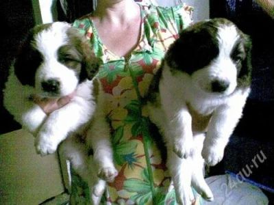 Продам щенков Московской сторожевой. Девочки, бело-рыжего окраса, возраст 1 месяц